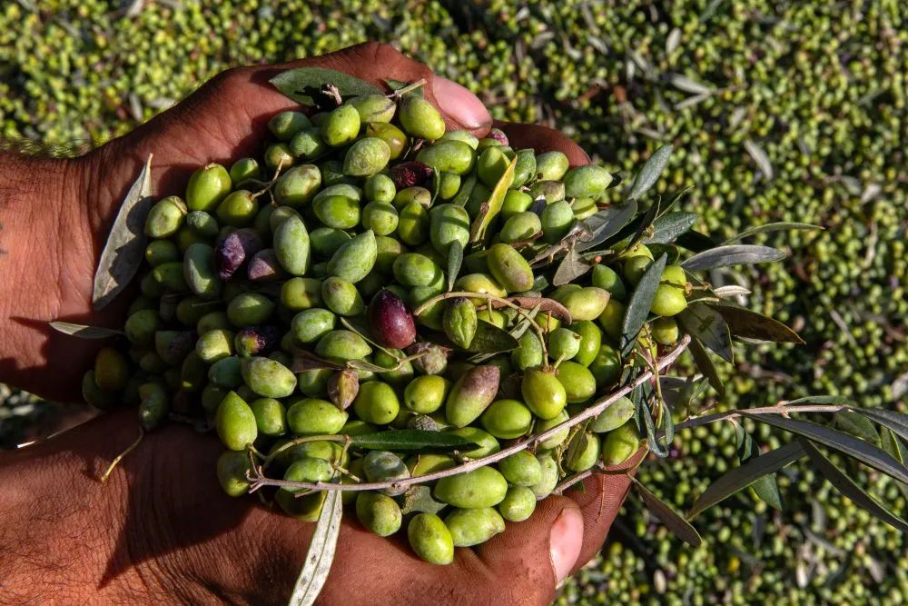 ↑剛剛采摘的油橄欖鮮果。