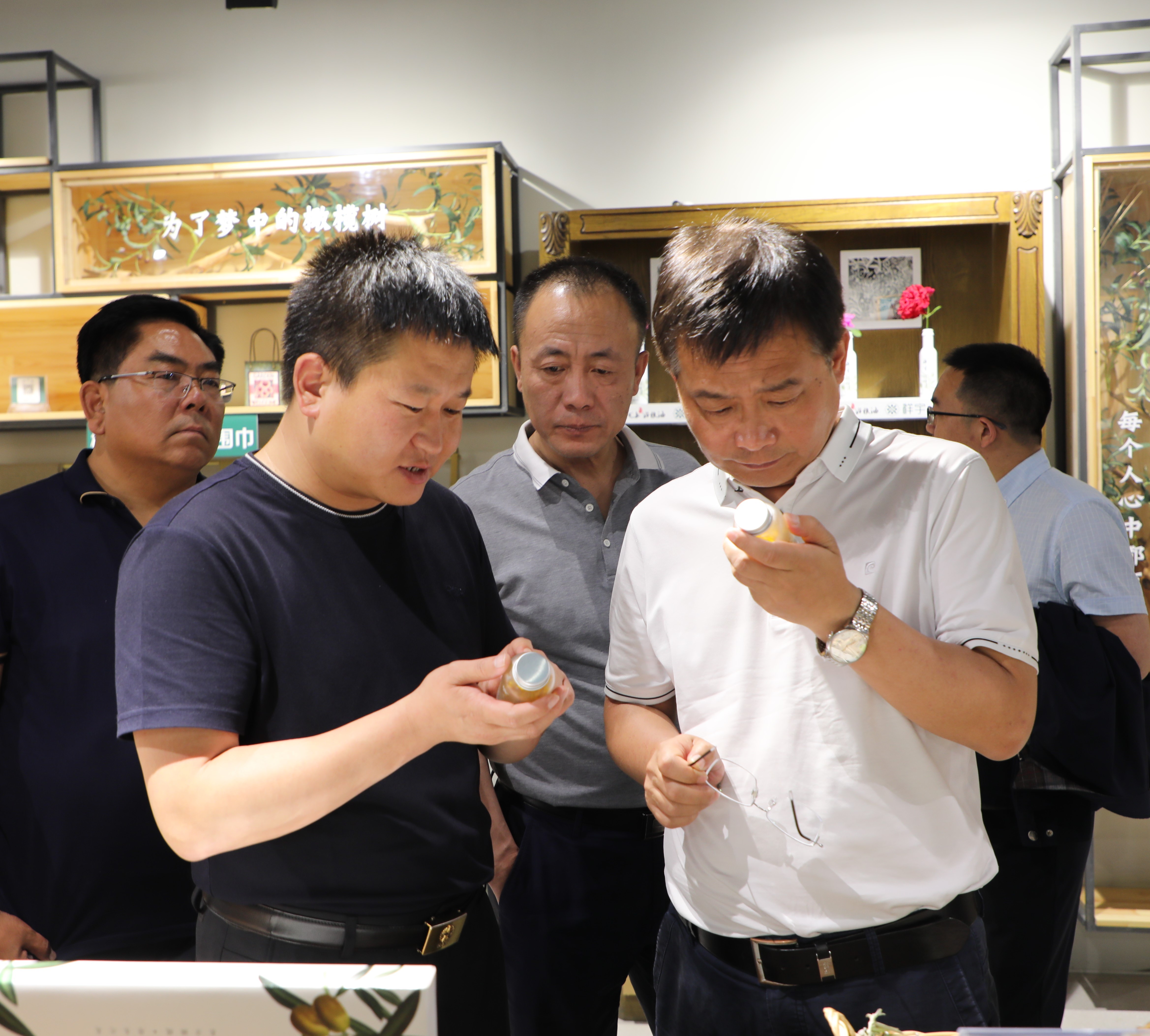 在產(chǎn)品品鑒區(qū),各位領(lǐng)導(dǎo)品鑒了祥宇特級(jí)初榨橄欖油、橄欖茶、橄欖菜、橄欖保健品等系列產(chǎn)品,