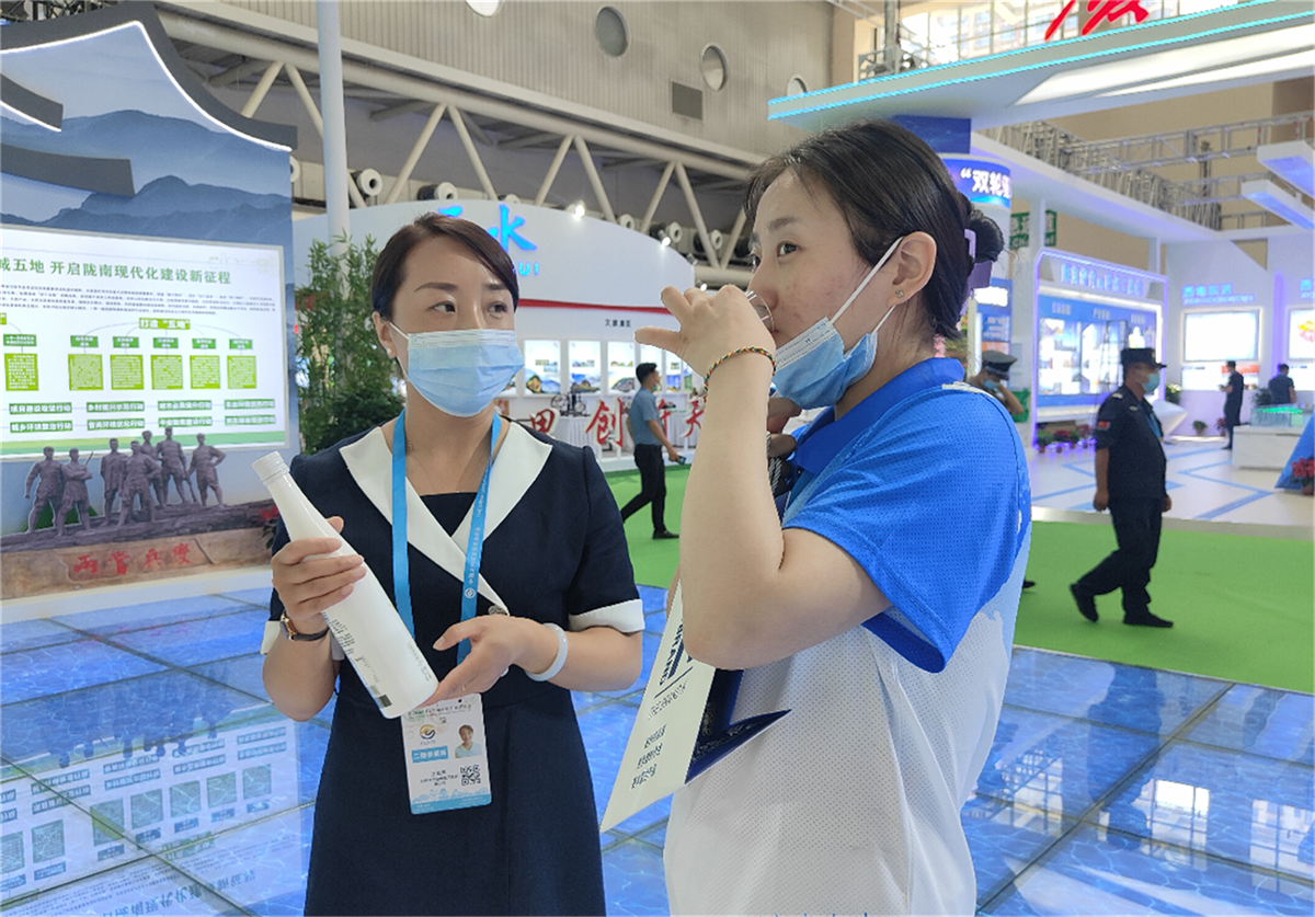 省市領(lǐng)導(dǎo)走進隴南館,祥宇公司董事長劉玉紅邀請各位領(lǐng)導(dǎo)品鑒了祥宇系列產(chǎn)品,